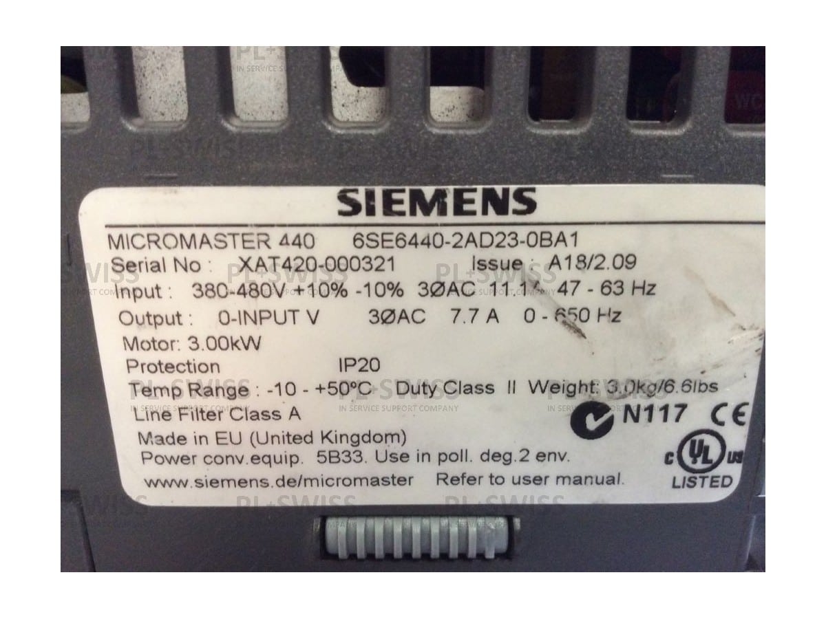 Die Teilenummer 6SE6440-2AD23-0BA1 oder 6SE64402AD230BA1 der Marke SIEMENS aus dem MICROMASTER Sortiment ist schnell verfügbar und garantiert 12 Monate auf unserer Seite.