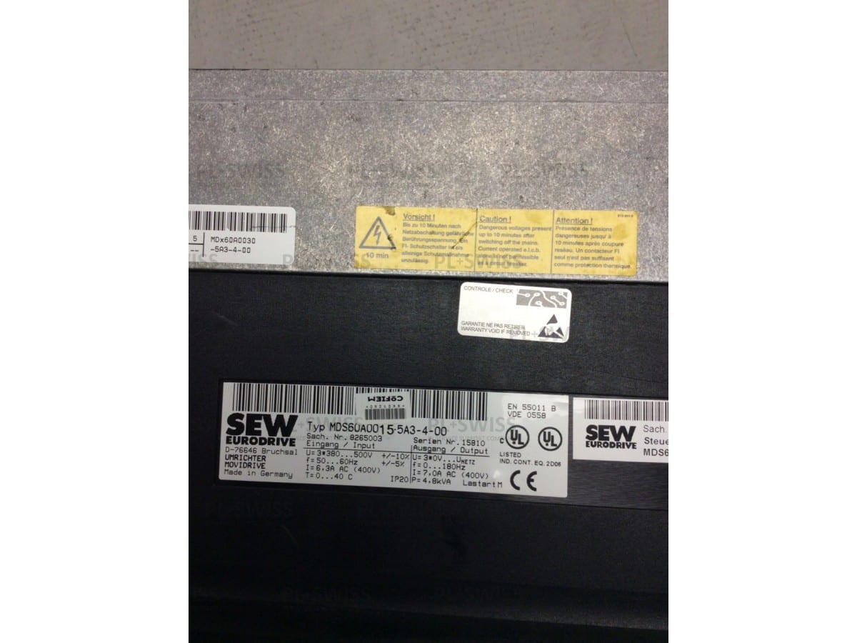 Die Teilenummer MDS60A0015-5A3-4-00 oder MDS60A00155A3400 der Marke SEW EURODRIVE aus dem NC Sortiment ist schnell verfügbar und garantiert 12 Monate auf unserer Seite.