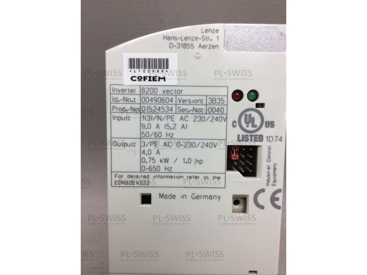 The equipment with type Variateur / Démarreur is manufactured by LENZE and commercialized under the reference E82EV751-2C.The equipment alternative reference is : E82EV7512C. This product comes from the 8200 VECTOR range. We guarantee the equipment in all the services offered for 12 months.