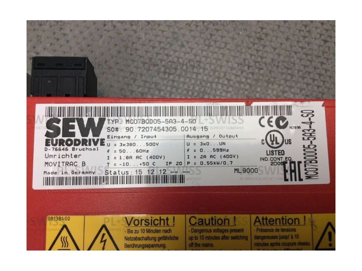 La pièce référence MC07B0005-5A3-4-S0 ou MC07B00055A34S0 de la marque SEW EURODRIVE de la gamme NC est disponible rapidement et garantie 12 mois sur notre site.