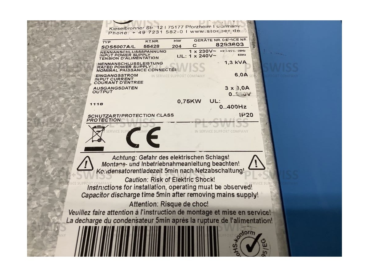 Le matériel de type Variateur / Démarreur est fabriqué par STOBER et commercialisé sous la référence SDS5007A/L.La référence alternative de l'équipement est : SDS5007AL. Ce produit est issu de la gamme POSIDYN. Nous garantissons 12 mois l'équipement dans l'ensemble des services proposés.